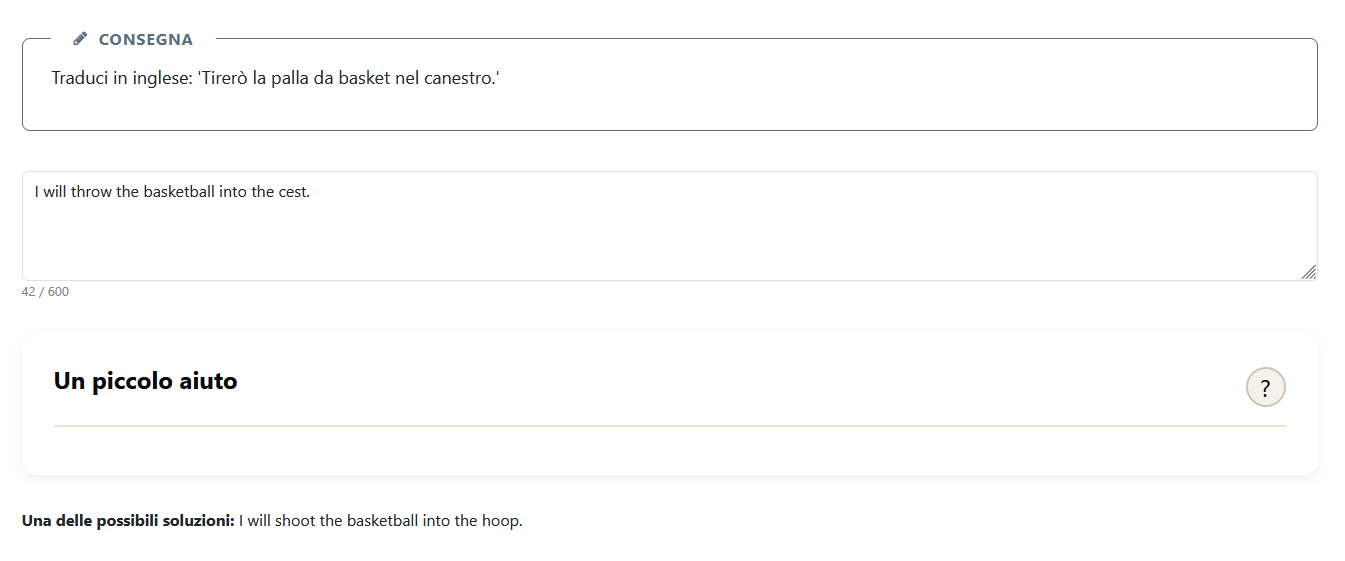 Guarda l'immagine qui sotto. Un sito normale ti avrebbe segnato tutta la frase in rosso. Baobab invece ti spiega esattamente perché hai sbagliato.