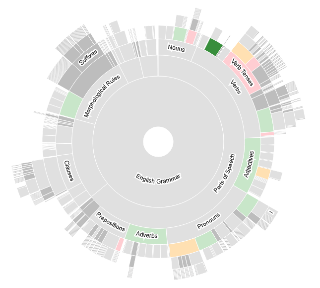 Una visione d'insieme: i settori verdi indicano padronanza, quelli rossi o rosa indicano argomenti dove stai commettendo errori.